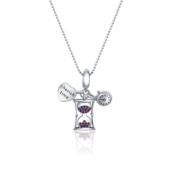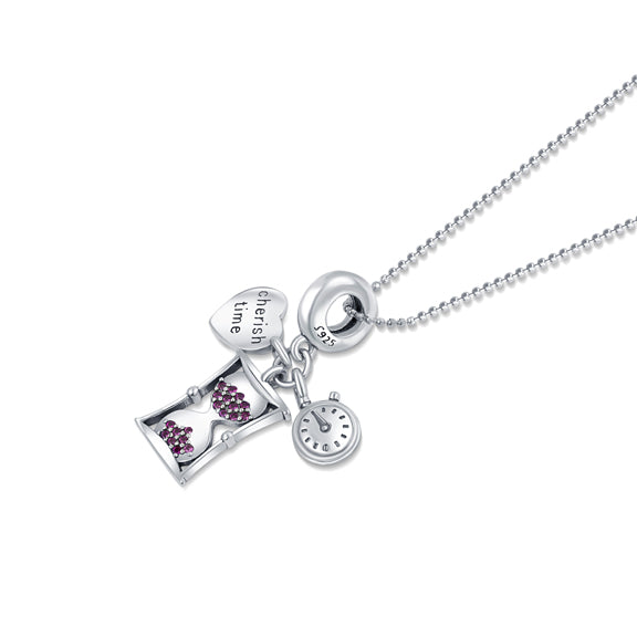 Gift yourself the perfect reminder to cherish time! This charming pendant and chain set features an exquisite 925 sterling silver charm in oxidised rhodium with time elements like hourglass, tiny pocket watch, and a small heart engraved with “Cherish Time”. Let the enchanting design be your fashion muse and add a touch of luxury to your style!