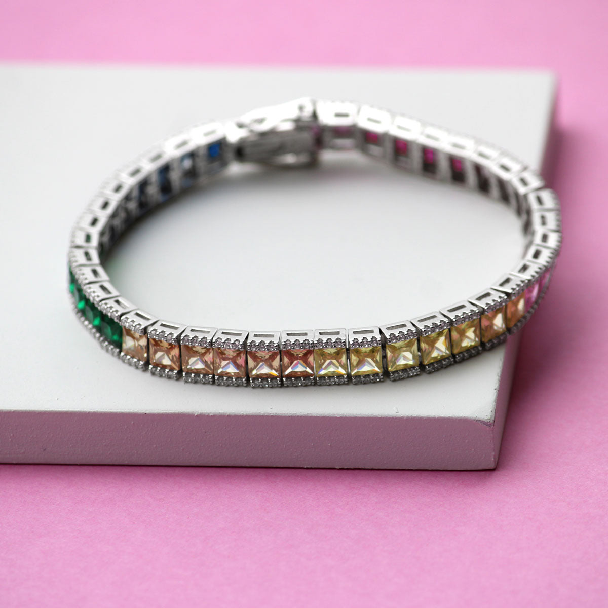 Colorful Splash Sterling Silver Tennis Bracelet for women