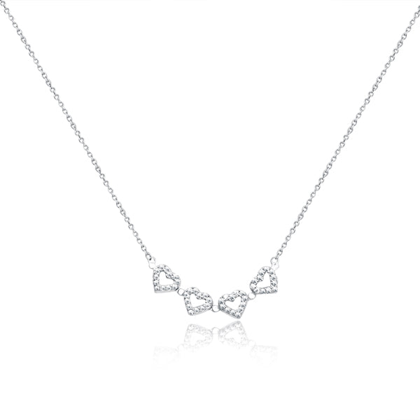neck. The simple and elegant, sparkling clover pendant has a timeless vintage appeal. Perfect for all time wear, and for cozy, casual and formal occasions, our Joyful Heart and Clover Magnetic Silver Necklace with Zirconia is a lucky charm, and a beautiful addition to your silver fashion jewellery collection.