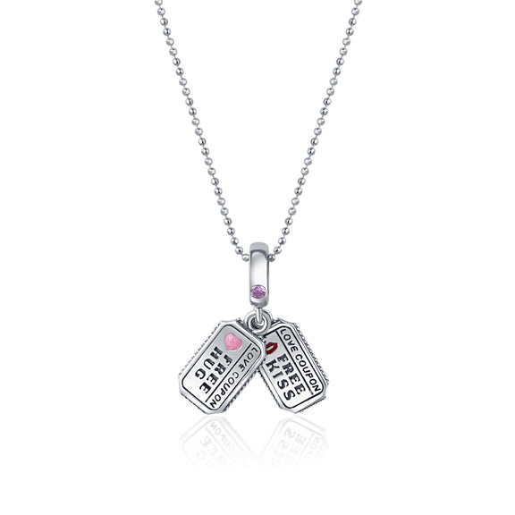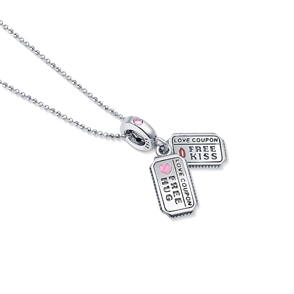 Love Coupon Silver Charm pendant and chain set for women
