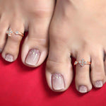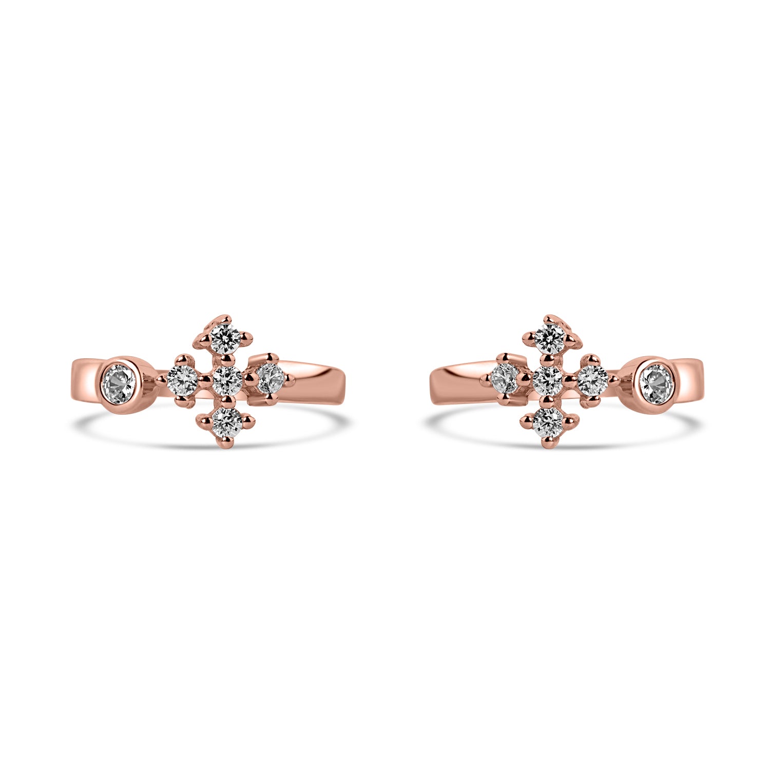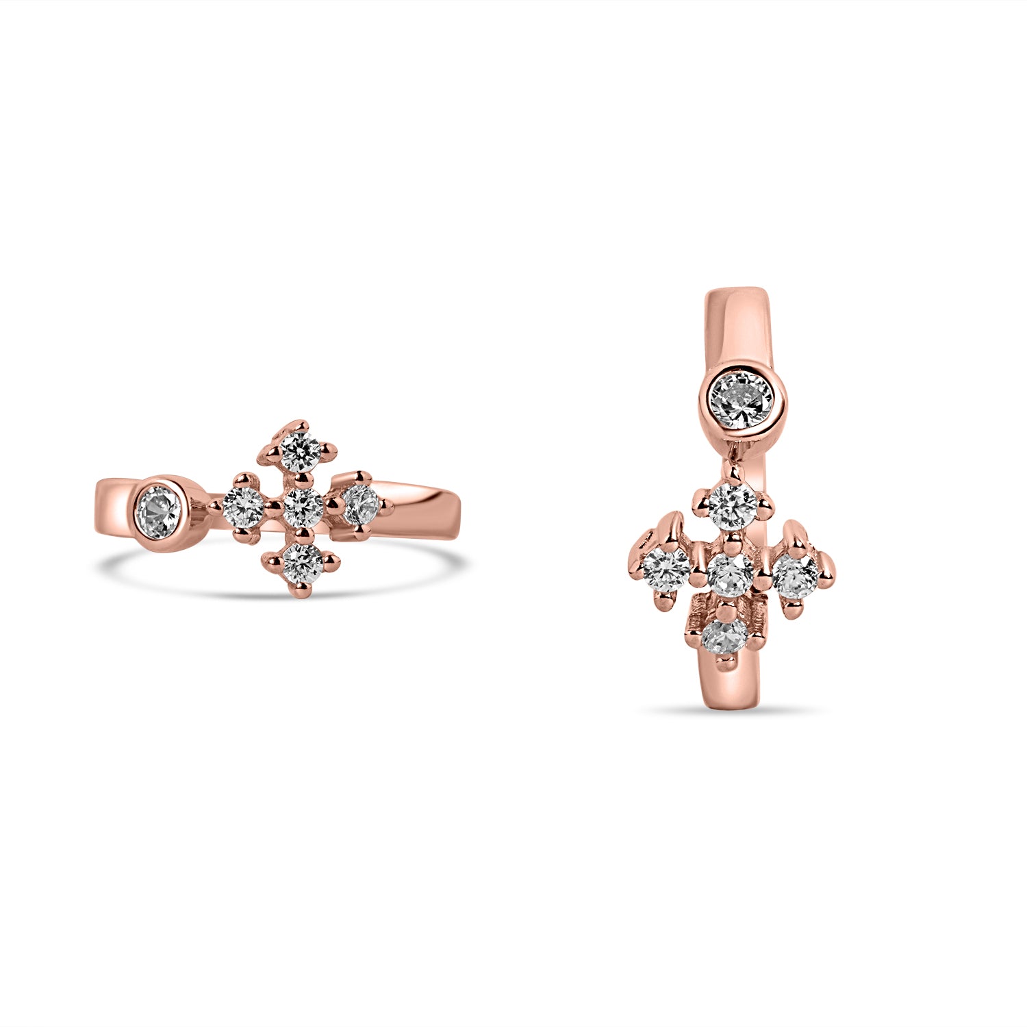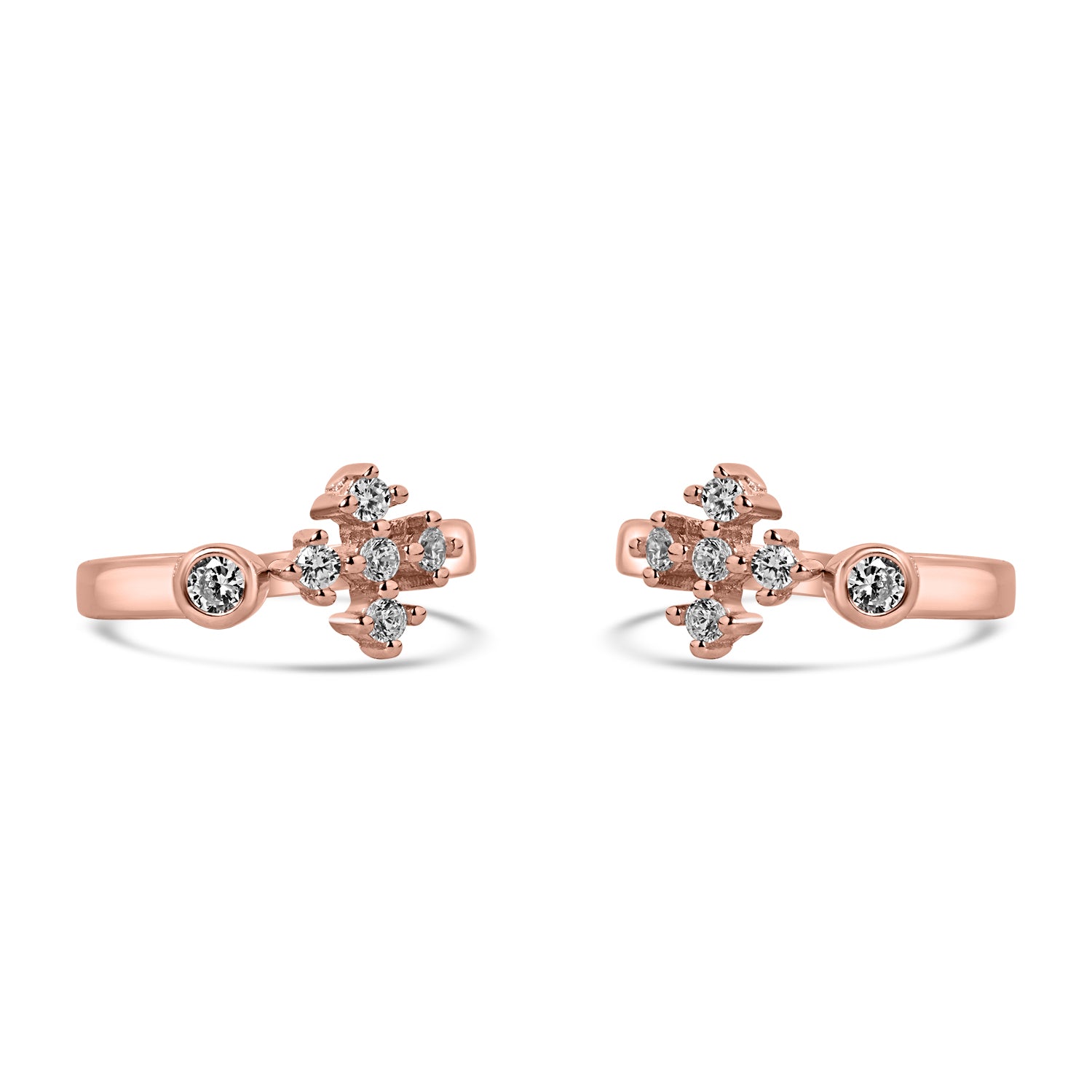 Add a touch of elegance to your look with the Rohini 925 Sterling Silver Toe Ring. Crafted in a luxurious and exclusive rose gold finish, this ring is embedded with shimmering zirconia stones and features a beautiful design motif. Its comfortable fit makes it the perfect toe accessory for any sophisticated woman.