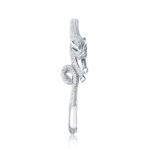 Behold the mesmerizing beauty of our Silver Panther Kada for Women! Crafted in 92.5 sterling silver, this kada features a sleek and stylish panther design, symbolizing strength and grace in equal measure. The stunning rhodium finish adds a brilliant shine, accentuating the intricate details of the kada. With the thickness of 14.74mm, this kada is a bold and elegant statement piece that will add a touch of fierce sophistication to any outfit. It's perfect for those who crave a touch of daring in their accessories, without compromising on elegance and poise.