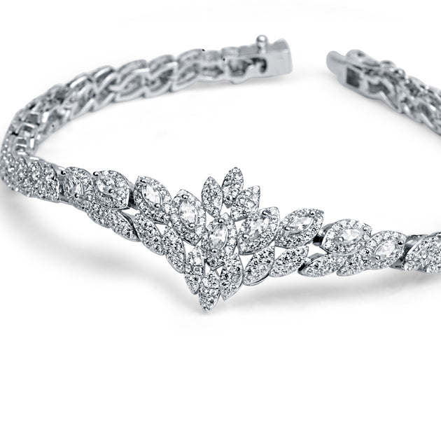 Elevate your look with Simmery Petals Sterling silver Bracelet for women for a touch of sophisticated elegance. Crafted from sterling silver with a rhodium finish, this bracelet features a stunning petal pattern adorned with delicate zirconia stones. An exquisite gift for the special woman in your life, this bracelet will bring a touch of luxury to any evening occasion.