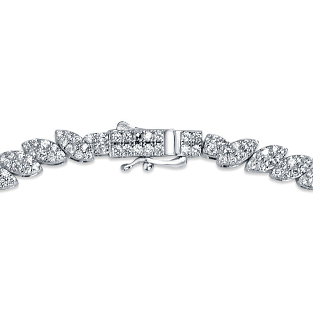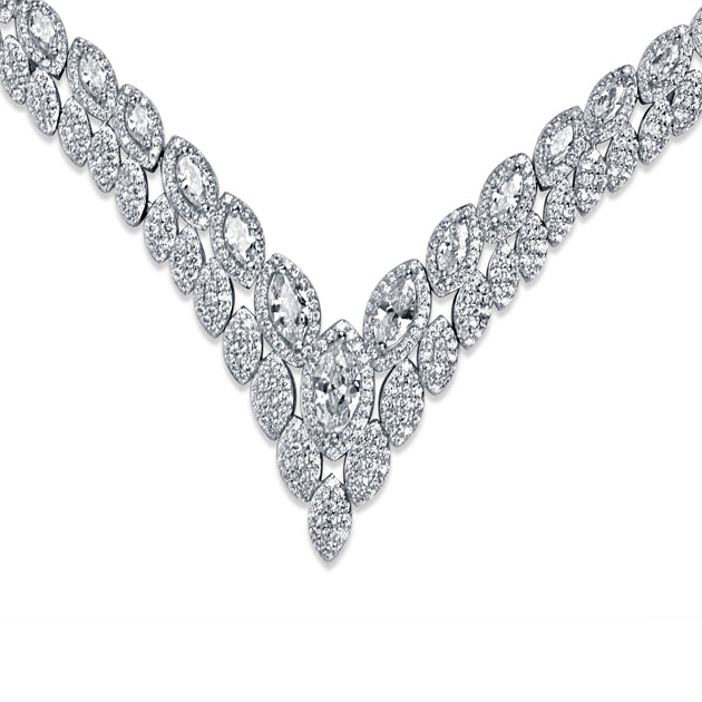 Sparkle and shine with Simmery Petals, a sterling silver necklace for women. Showcasing intricate petal patterns studded with stunning zirconias, this shimmery party wear will give you a luxurious look with its rhodium finish. Ideal for special occasions, this statement piece is sure to draw attention.