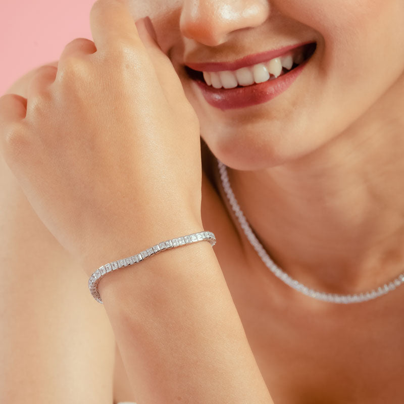 Be the belle of the ball with this exquisite Sparkling Bliss Bracelet for Women with Zirconias. Crafted from brilliant sterling silver and embellished with luminous zirconias, this bracelet is sure to bring a touch of effortless elegance and sophistication to any outfit. The rhodium finish ensures a polished shine, completing the look to beautify your wrist.