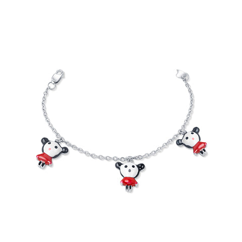 Indulge your little one with the luxurious and exclusive Rocking Mickie Sterling Silver Bracelet. Made of pure sterling silver with a silver finish, this bracelet features enchanting enamel mini mouse charms, elegantly suspended from a linked chain. A perfect accessory for your little fashionista.