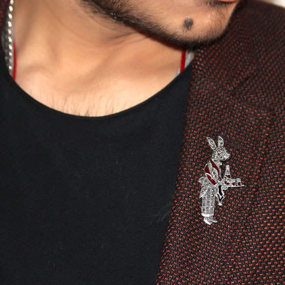 Peter Rabbit Oxidised Silver Brooch for Men with Marcasite