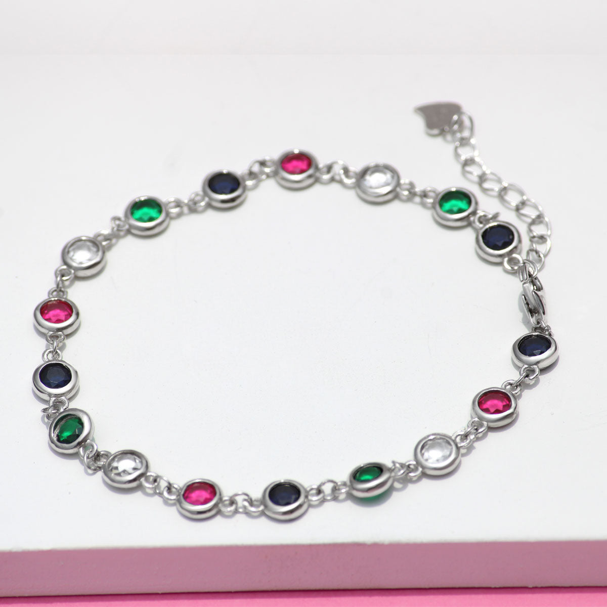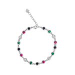 Add some sparkle to your style with our Sparkling colors 925 Sterling Silver Bracelet for women. The rhodium finish adds a touch of elegance to the beautiful multicolor round zirconia stones. Perfect to wear all day long, this bracelet is sure to make a statement!