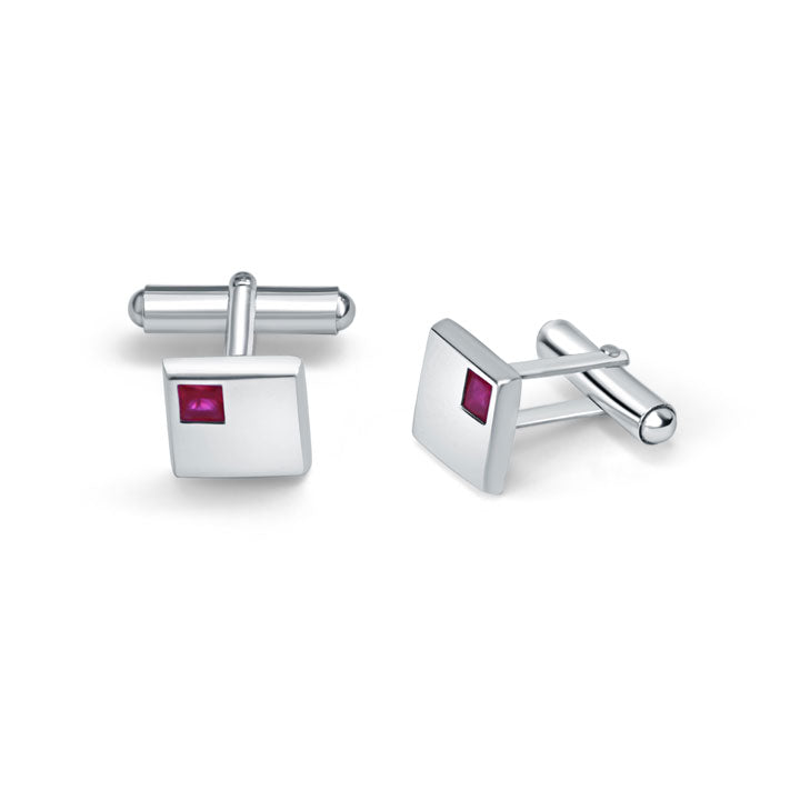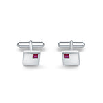Elevate your formal attire with our sleek and modern 925 sterling silver cufflinks. Featuring a square shape with a luxurious rhodium finish, these cufflinks exude sophistication and style. The subtle touch of pink zirconia stones at each corner adds a hint of elegance, making them perfect for formal events or everyday wear. The minimal design ensures versatility, allowing you to pair them with any shirt and suit.
