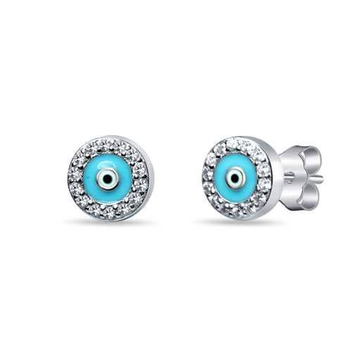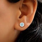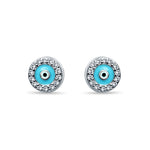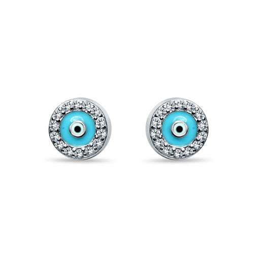 Crafted from gleaming sterling silver, these luxurious studs feature an Evil Eye charm intended to ward off negative energy. Sparkling Zirconia in a vibrant blue hue adds a touch of elegance, making them an ideal accessory for any ensemble. Accent your outfits with these symbols of protection for a stylish and secure look.