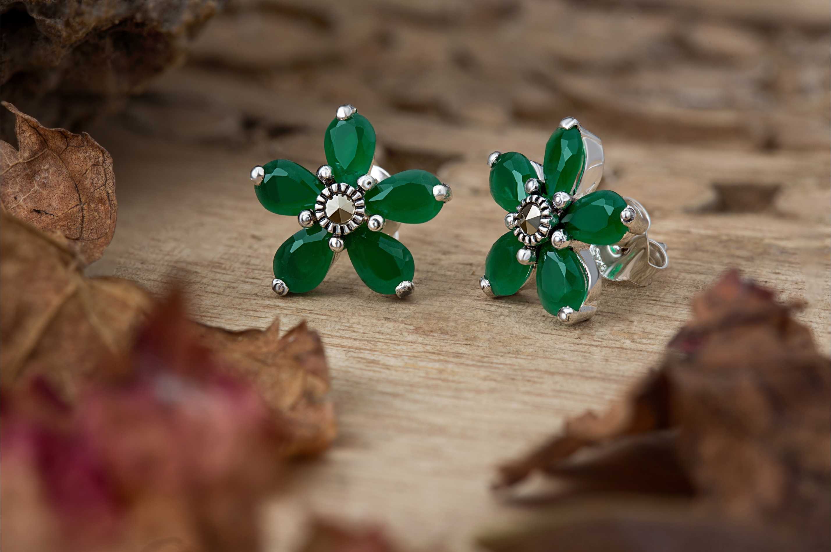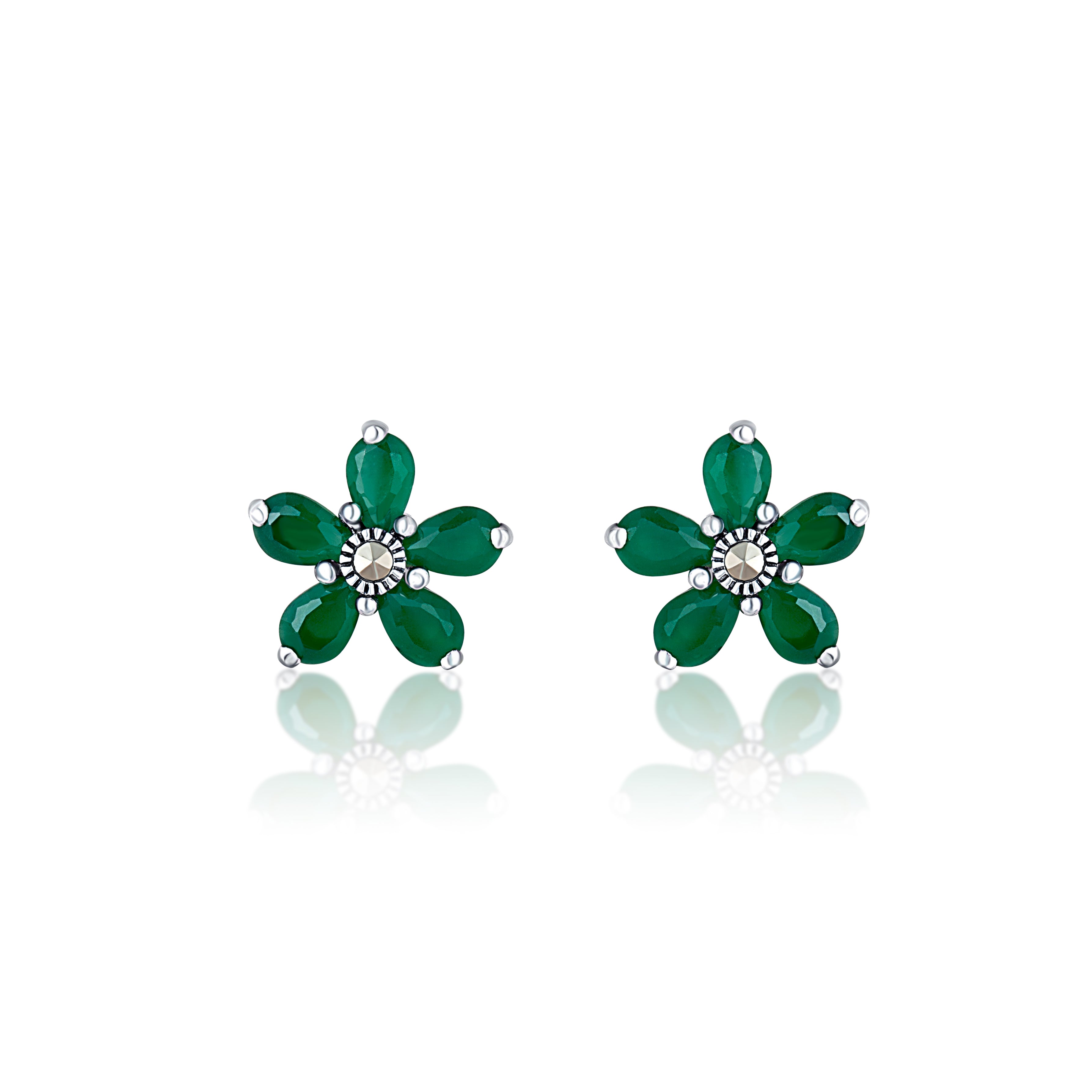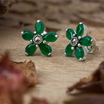 Wow! If you are also someone who defines flowers with the word 'wow' you are gonna never take these flower studs out of your ears. Emeralds flowers studs are inspired by everything beautiful in nature. Composed of 92.5 sterling silver and encrusted with emerald on the petals, this pair is one of the unexampled studs. Embrace the emerald flower studs and lose sight of the fact about the entire world.
