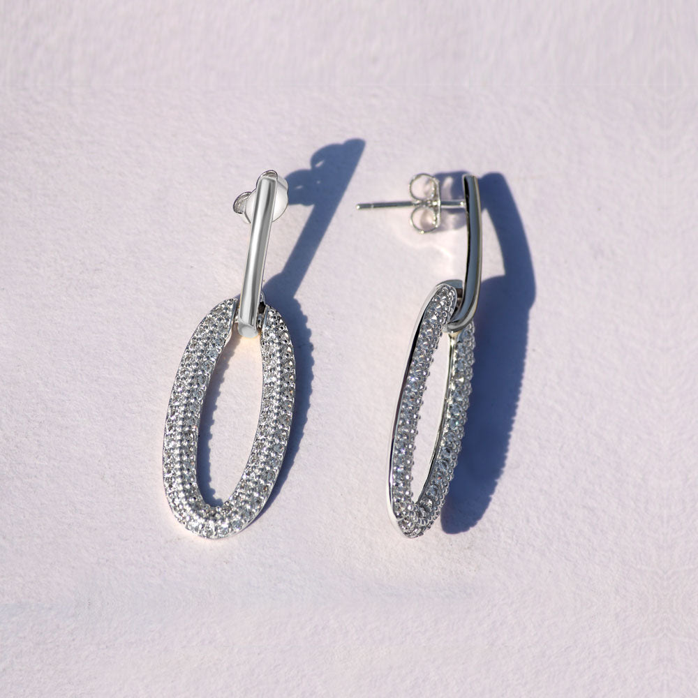 Elevate your party look with the Dazzle Glam Dangler Earrings, stunning 925 sterling silver pieces featuring oval-shaped zirconia studs and a luxurious rhodium finish. Suspended from silver wand, these earrings exude elegance and sophistication, perfect for making a statement at any party, wedding, or special occasion. With their sophisticated design and premium quality, they're sure to turn heads and sparkle all night long.