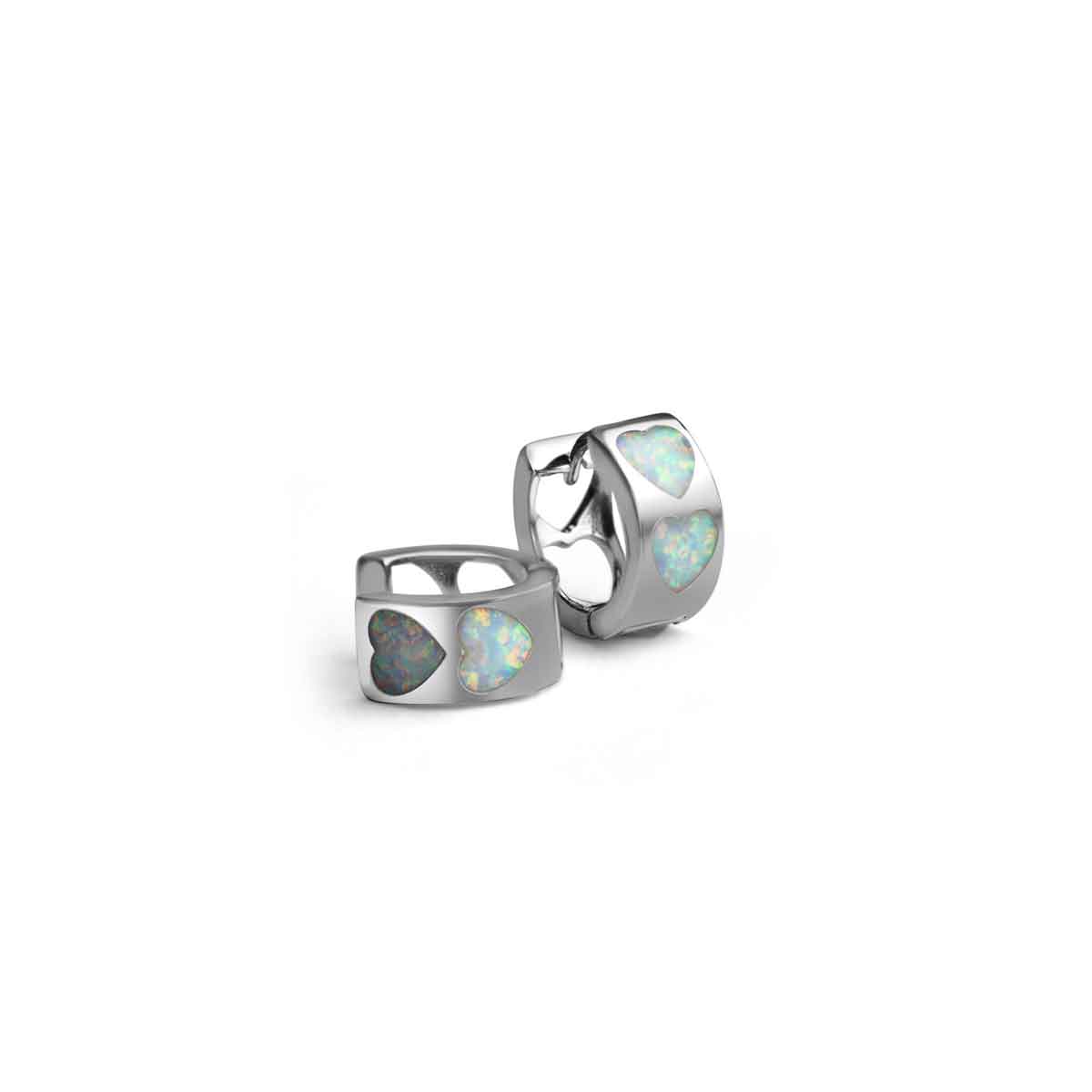 Hearty Affair white opal sterling silver hoops