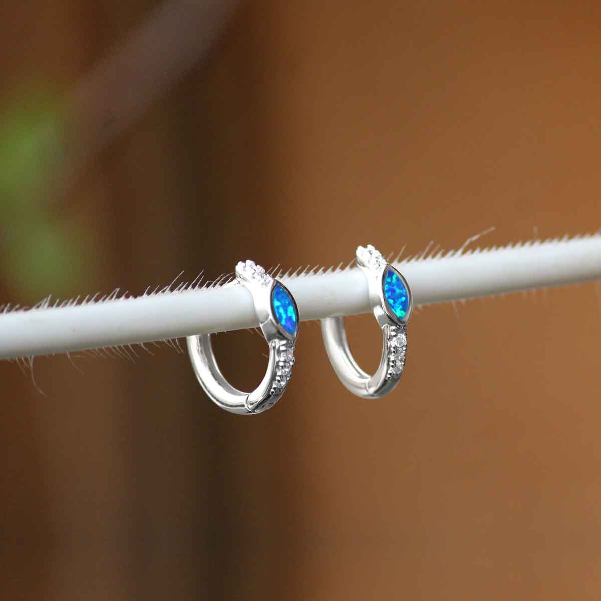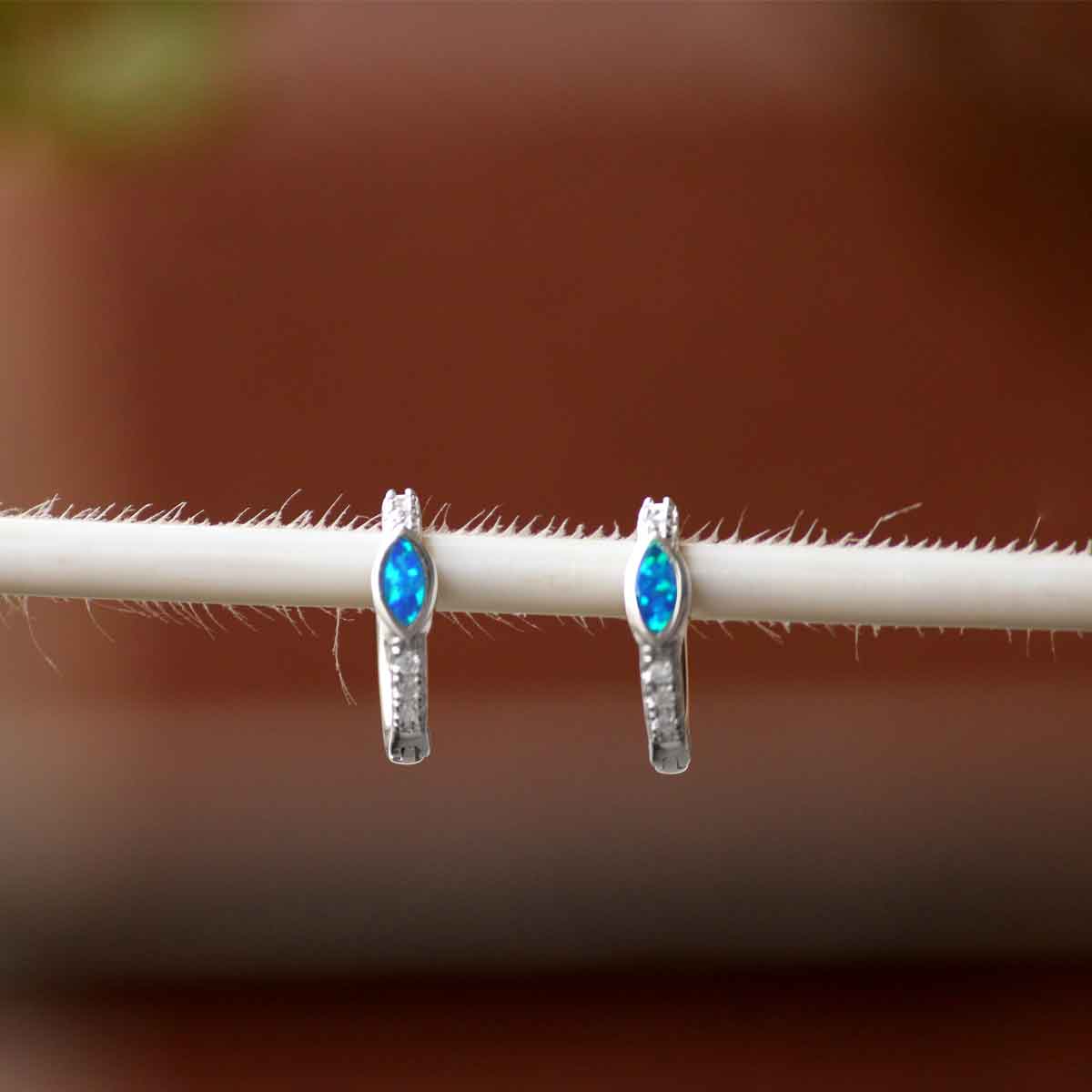 Naazneen blue opal sterling silver hoops