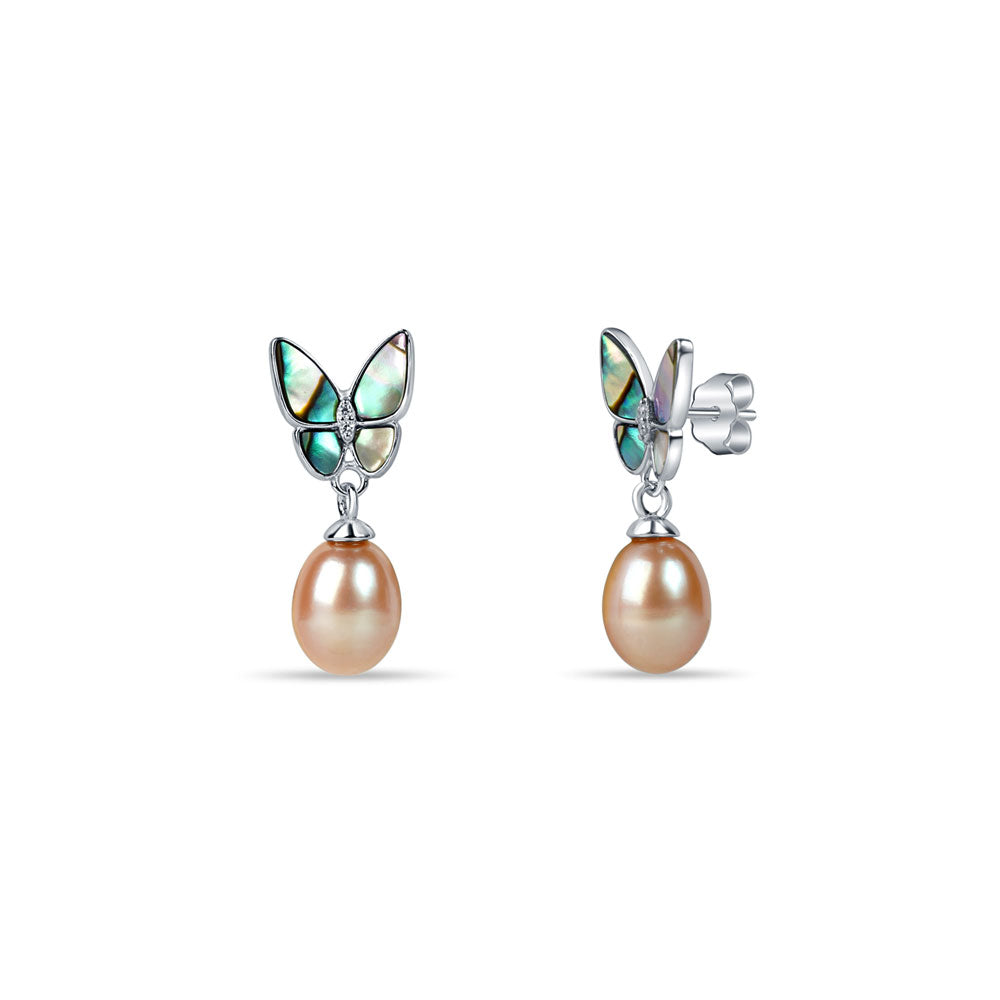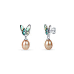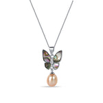 Express your unique style with our 925 sterling silver 3-piece set for women. The rhodium finish adds a touch of elegance to the black mother of pearl and zirconia studded ring, earring, and pendant. Complete the look with a hanging pearl and butterfly design. Perfect for any occasion!