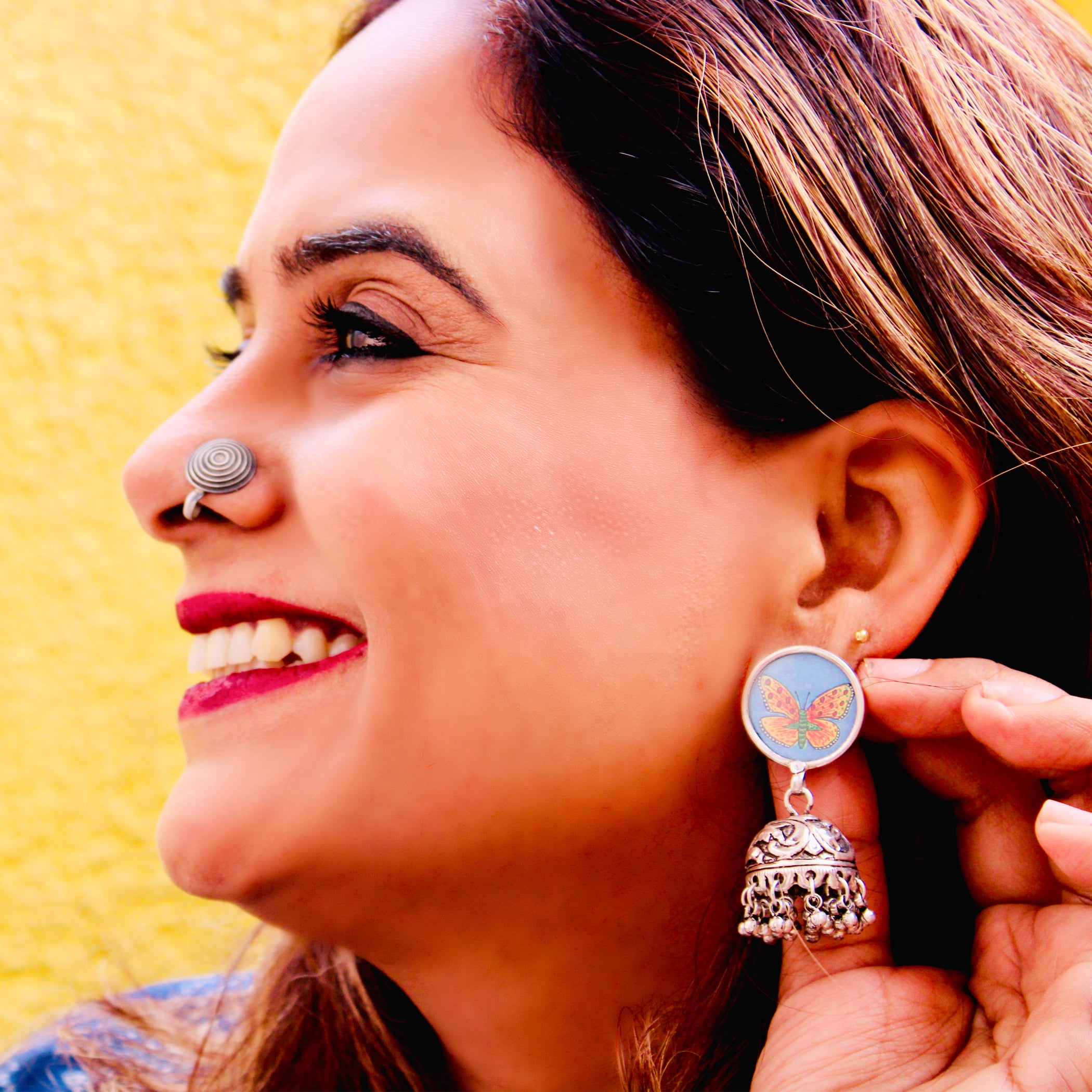 Titli 925 Sterling Silver Enamelled Jhumka