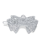 Indulge in elegance with the Flora Bow Sterling Silver Hair Clip. Crafted with luxurious sterling silver, this hair clip boasts a delicate flower and bow design. Perfect for gifting, this accessory adds a touch of sophistication to any hairstyle. Elevate your look with this exclusive piece.