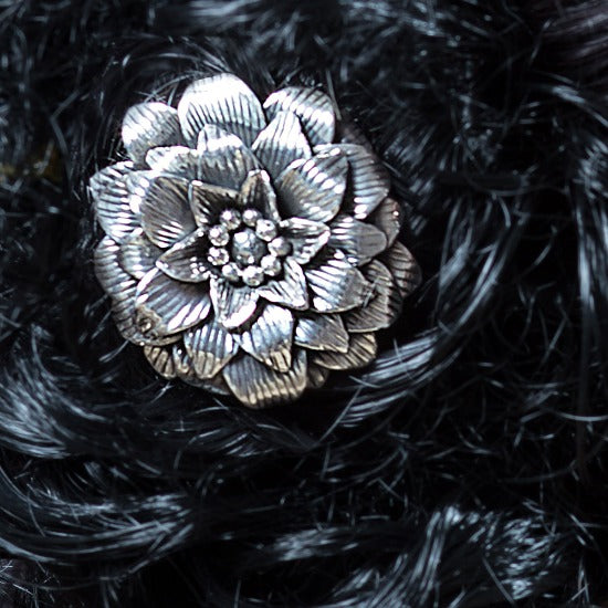 Our Aamodini Silver Juda Pin is just the feminine sparkle you need to glamorise your hairdo. Set in 92.5 Sterling Silver with oxidised silver finish, our Aamodini Juda Pin is exquisitely crafted in a layered floral swirl, giving it a 3D depth. With a sized closure, it fits perfectly on your juda (hair bun) of any size or style. Juda Pin is a very traditional ethnic jewellery piece. Down the ages it has been an integral part of ethnic ensembles of India. Truly a regal accessory, it adds to the delicate feminine charm. It is one of those fashion accessories that is a very personalised fashion statement that sets you apart. Our Aamodini Silver Juda Pin, with its exquisite craftsmanship, is just the signature on your fashion statement.