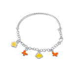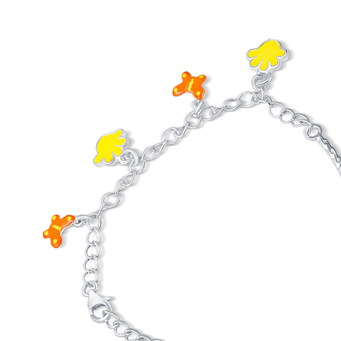 Indulge in the ethereal beauty of our Flower and Butterfly Charms Sterling Silver Bracelet. Hand-crafted with intricate details, this bracelet features delicate flowers and butterflies adorned with yellow and red enamels. Perfect for your little girl, it will make a treasured gift that she will cherish for years to come.