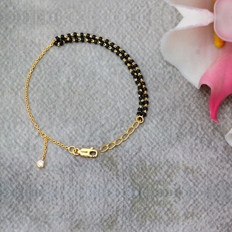 Celebrate the eternal bond of love with the Forever Together 925 Sterling Silver Mangalsutra Bracelet. Designed with two elegant lines of black beads joined by golden-finish links, this bracelet beautifully symbolizes the essence of a traditional Mangalsutra in a modern, minimal form.
