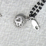 Tie your love with elegance and meaning through the Heartstrings 925 Sterling Silver Mangalsutra Bracelet. Crafted with a delicate hanging ball intricately carved with heart motifs, it features a center heart studded with sparkling zirconias, symbolizing love that shines forever.