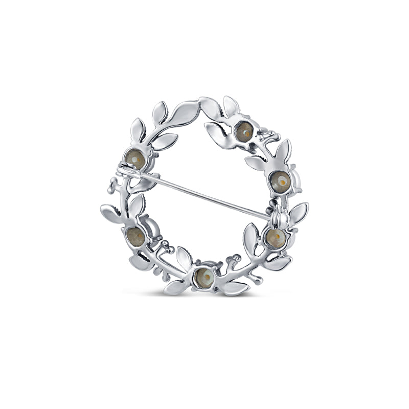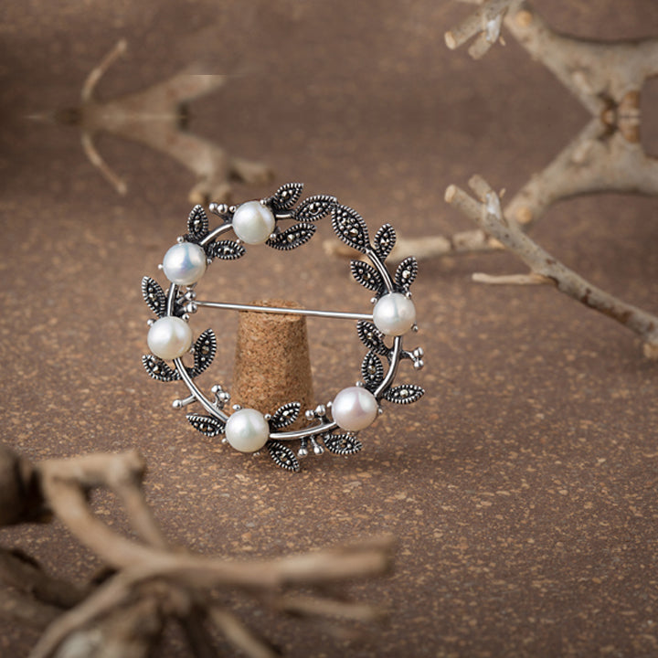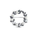 Eternal Flower Wreath Silver Brooch with Pearl for Women
