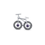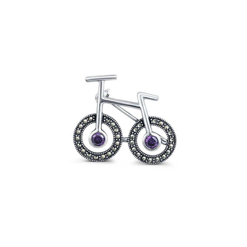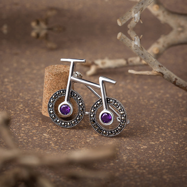 Glam Cycling Silver Brooch /Lapel Pin with Purple Stones for Women