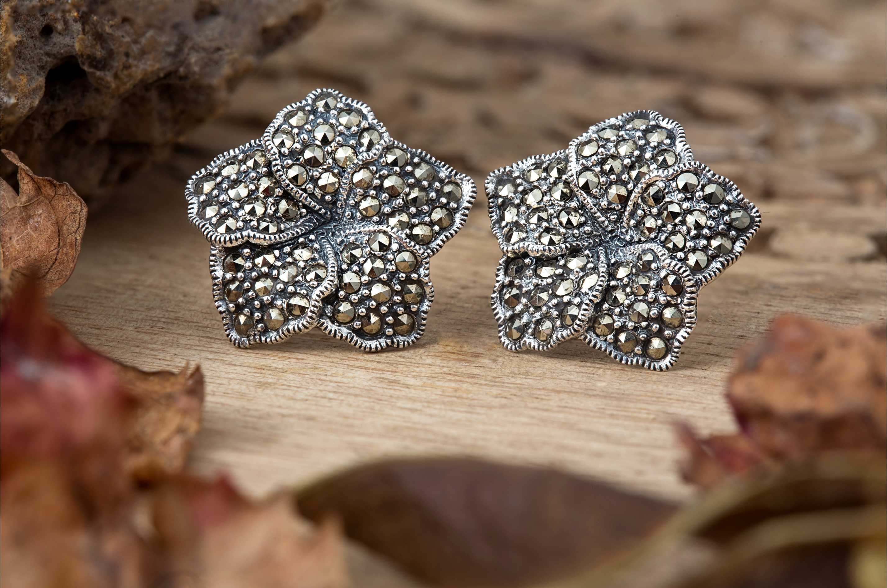 A silver flower is a little representation of how hibiscus would appear as a piece of jewellery. Inspired by all that is lovely and delightful in nature. Handcrafted from 92.5 sterling silver with enchanted marcasite all over the silver hibiscus blossoms, this piece adds creative flair to your jewellery box and you're aesthetic. Right away, add some elegance with this delightful piece.