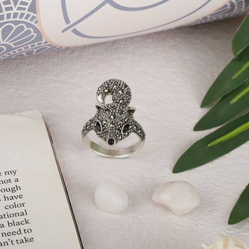 This Little Squirrel Ring is sure to cause a flurry! Crafted from 925 sterling silver, oxidised and studded with marcasite and black onyx - this whimsical bauble is perfect for that special someone who's still a kid at heart. So go on, bring the fun to your finger!