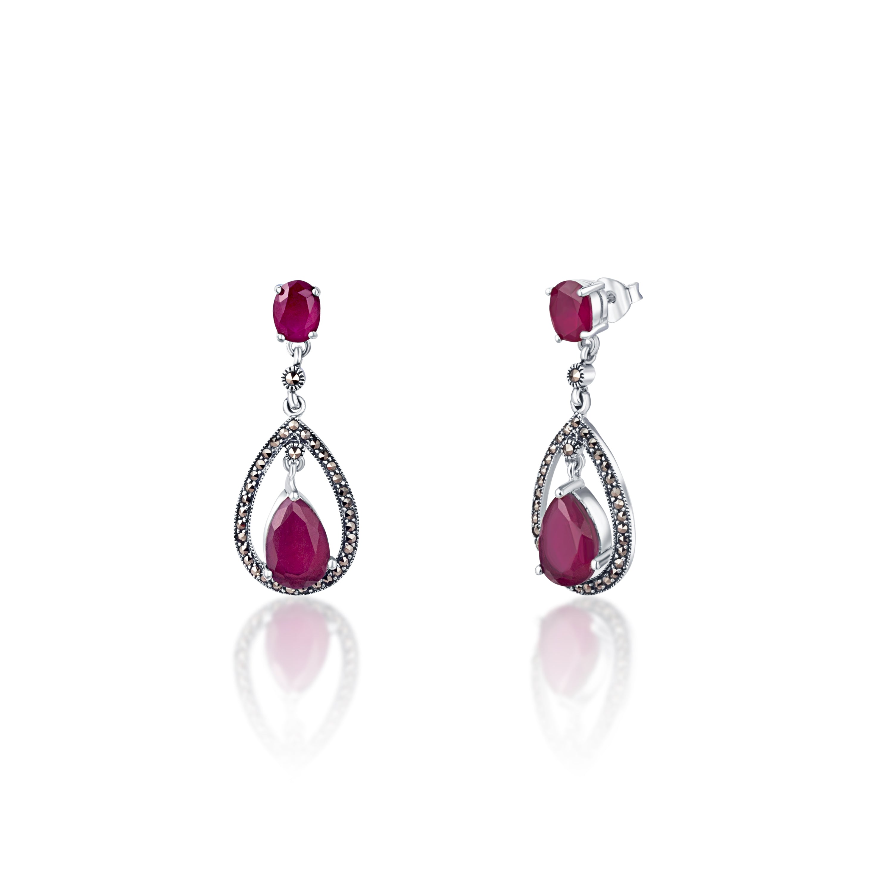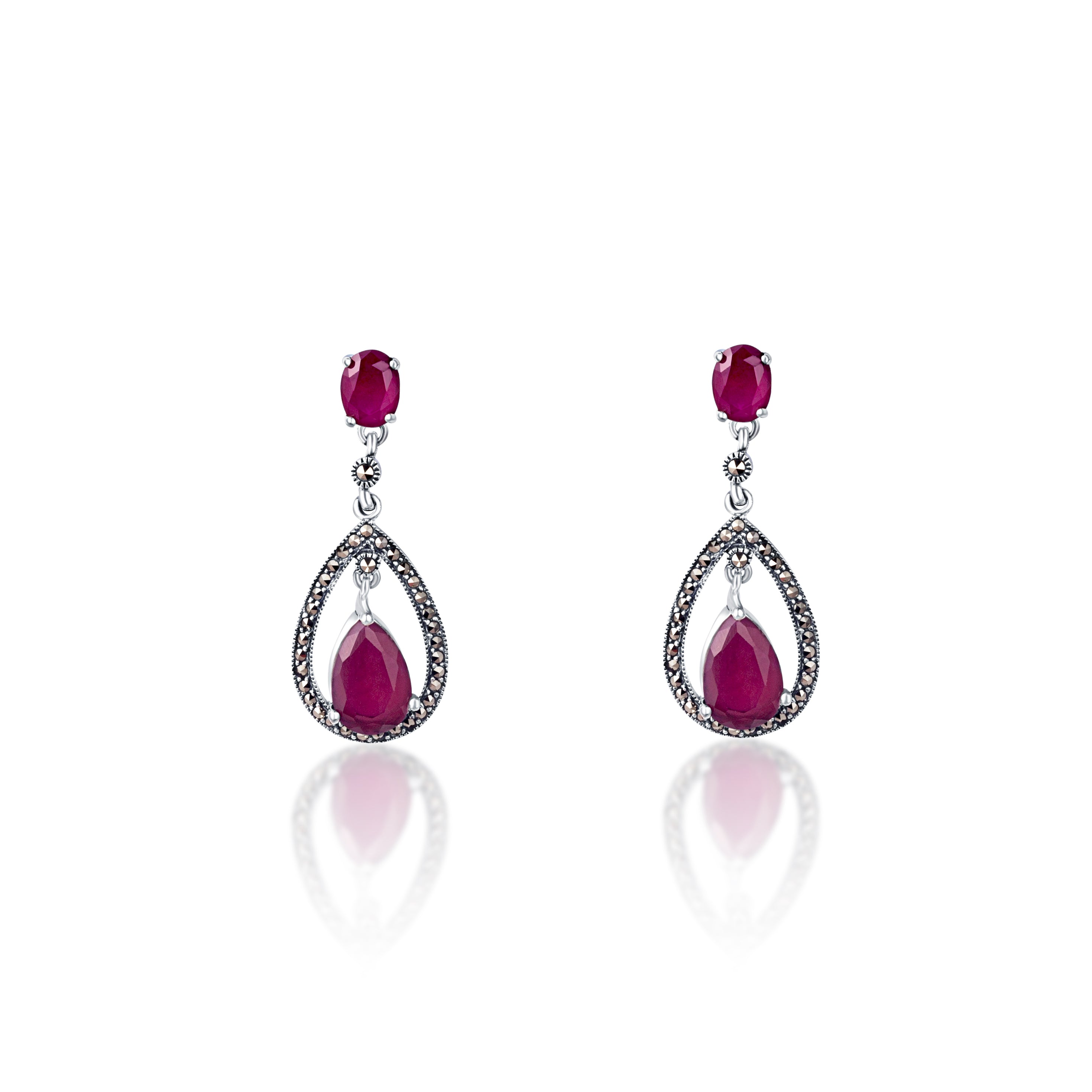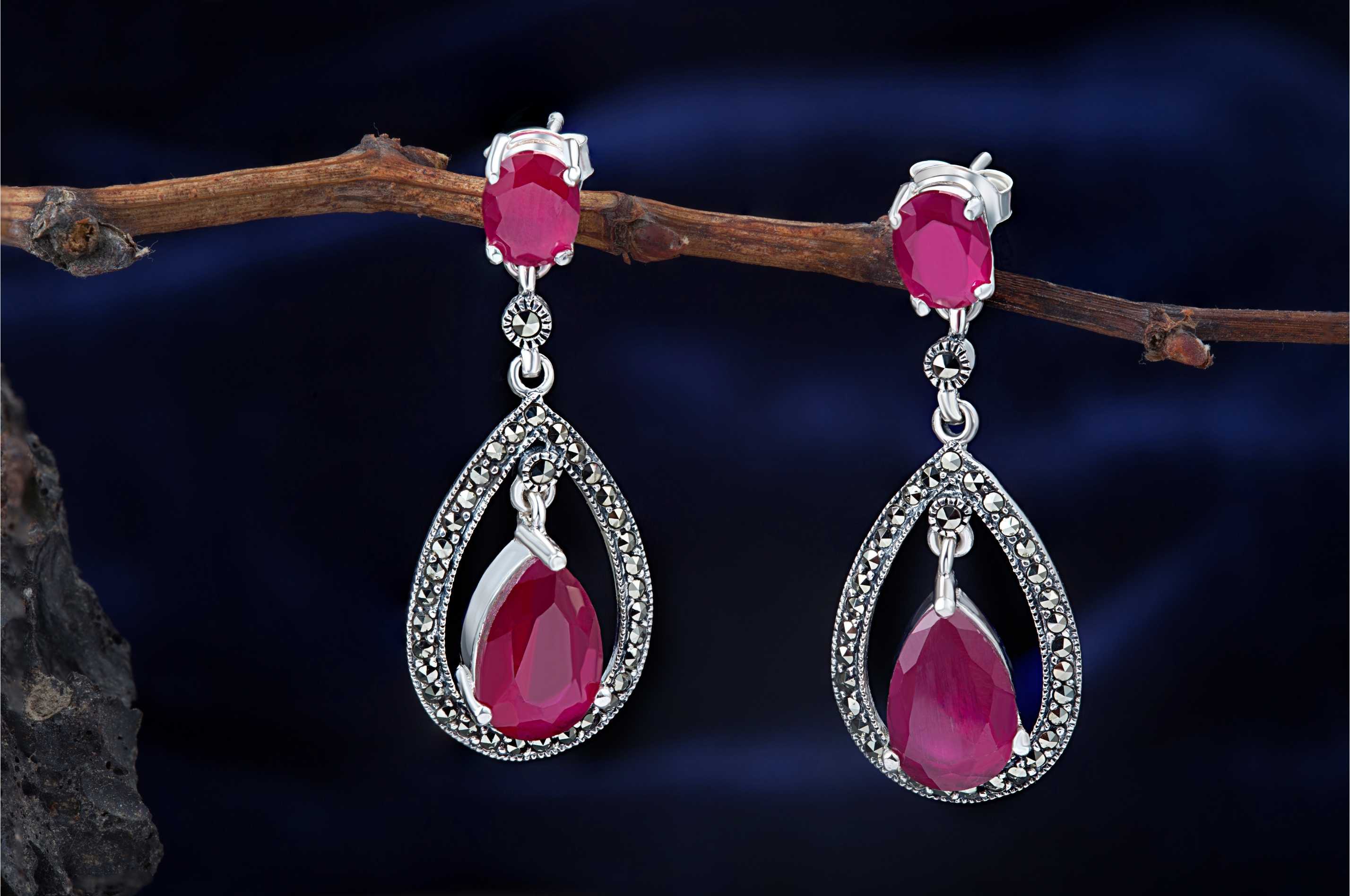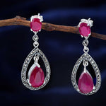 The drop holding drop is the sanity of god. The beautiful drop is constructed by marcasite and has the heart of the ruby. Handcrafted 92.5 sterling silver danglers have a mesmerizing Oxidized silver finish. Easy to wear this is the elegant everyday artwork thanks to its push-back closure. Embrace the beauty with elegance and style.