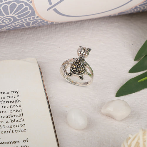 You and your furry friends will be purr-fectly on point with this Quirky Catty Ring! This marcasite masterpiece adds a dose of 'mew-delity' to your outfit, so you can strut around town in fierce (but fun!) fashion. Meow-vellous!