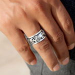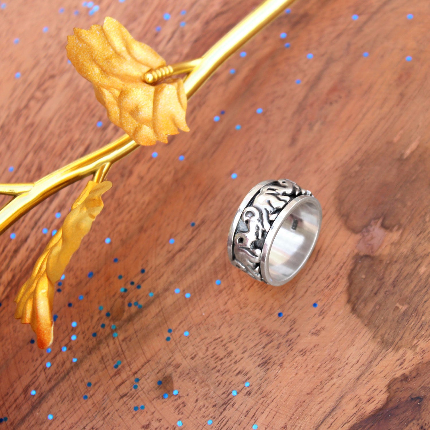Embody the strength and wisdom of the majestic elephant with the Maha Prana band, a unique and symbolic accessory for the modern man. Crafted from 925 sterling silver, this oxidised finish band features intricate, movable elephant figures that encircle the band, representing good fortune and spiritual growth. Perfect for those who seek inspiration from nature's wonders.