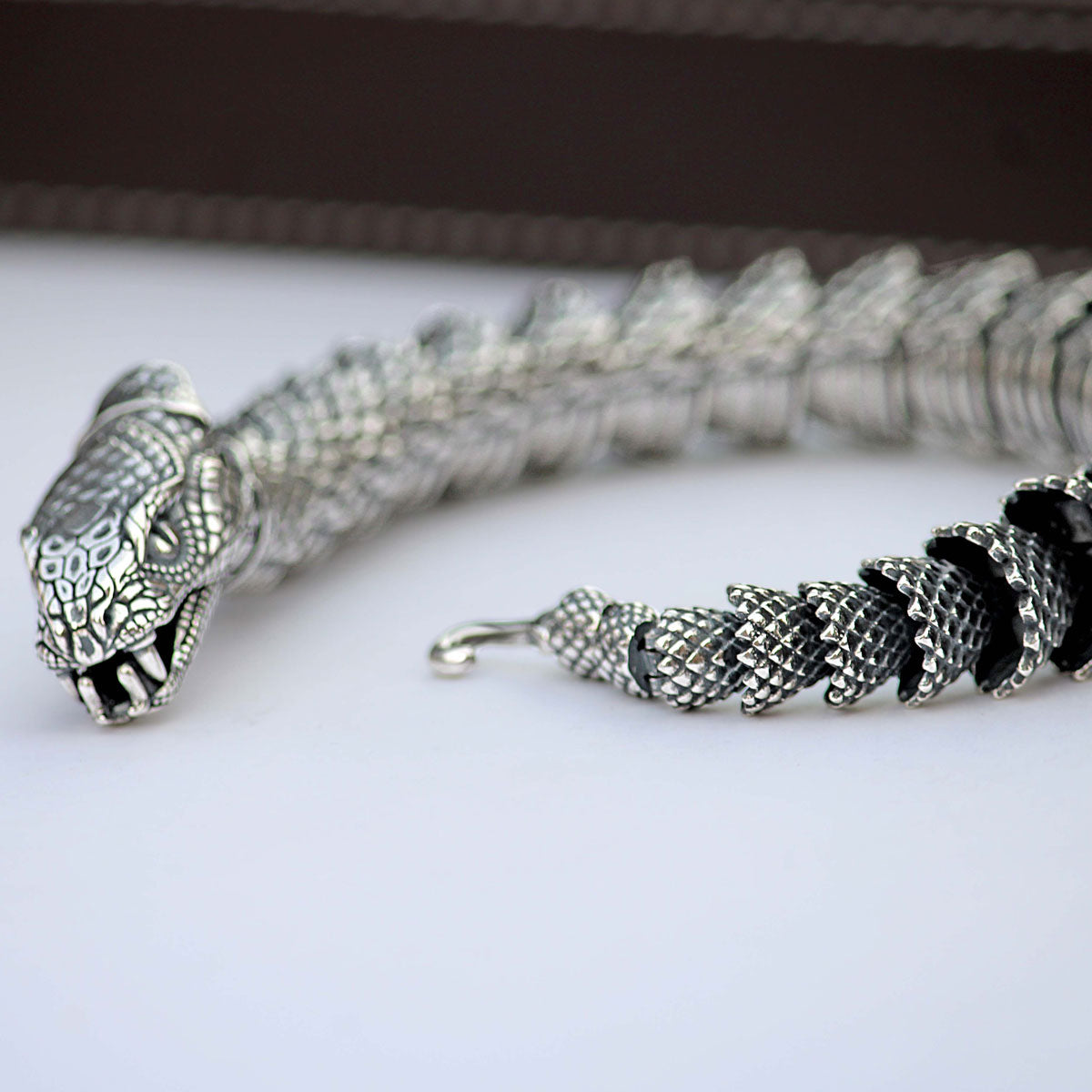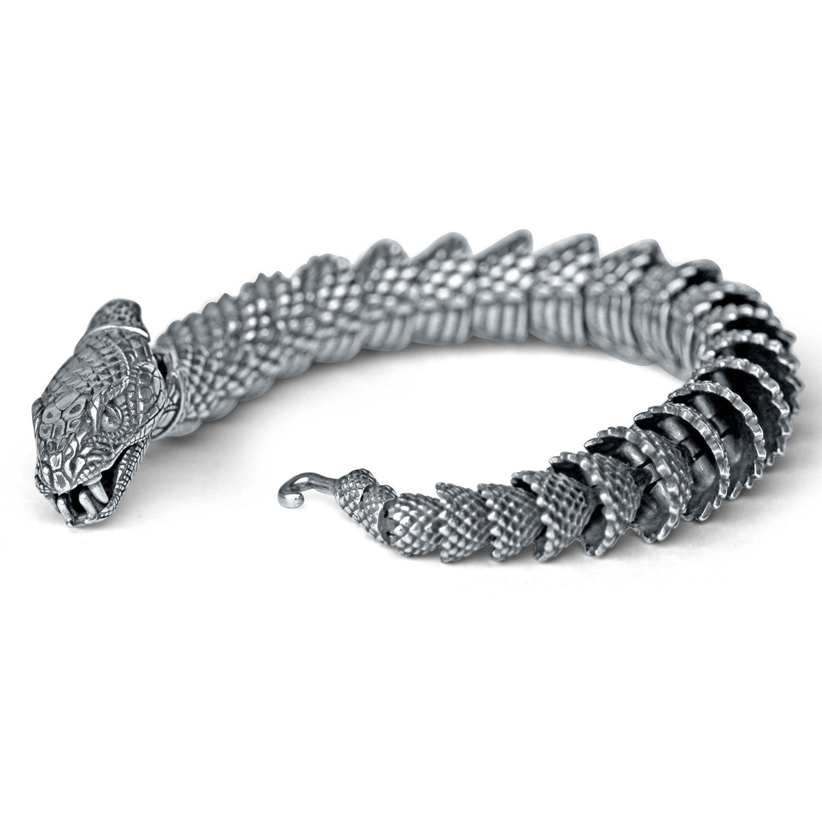 Unleash your bold side with the "Fierce Charmer" 925 sterling silver bracelet, expertly crafted for the modern man. This striking piece features an intricate snake link design, showcasing a detailed chain of interconnected serpents. The oxidised finish adds a rugged, edgy touch, perfect for the man who dares to be different. This unique bracelet is sure to make a statement and elevate your style.