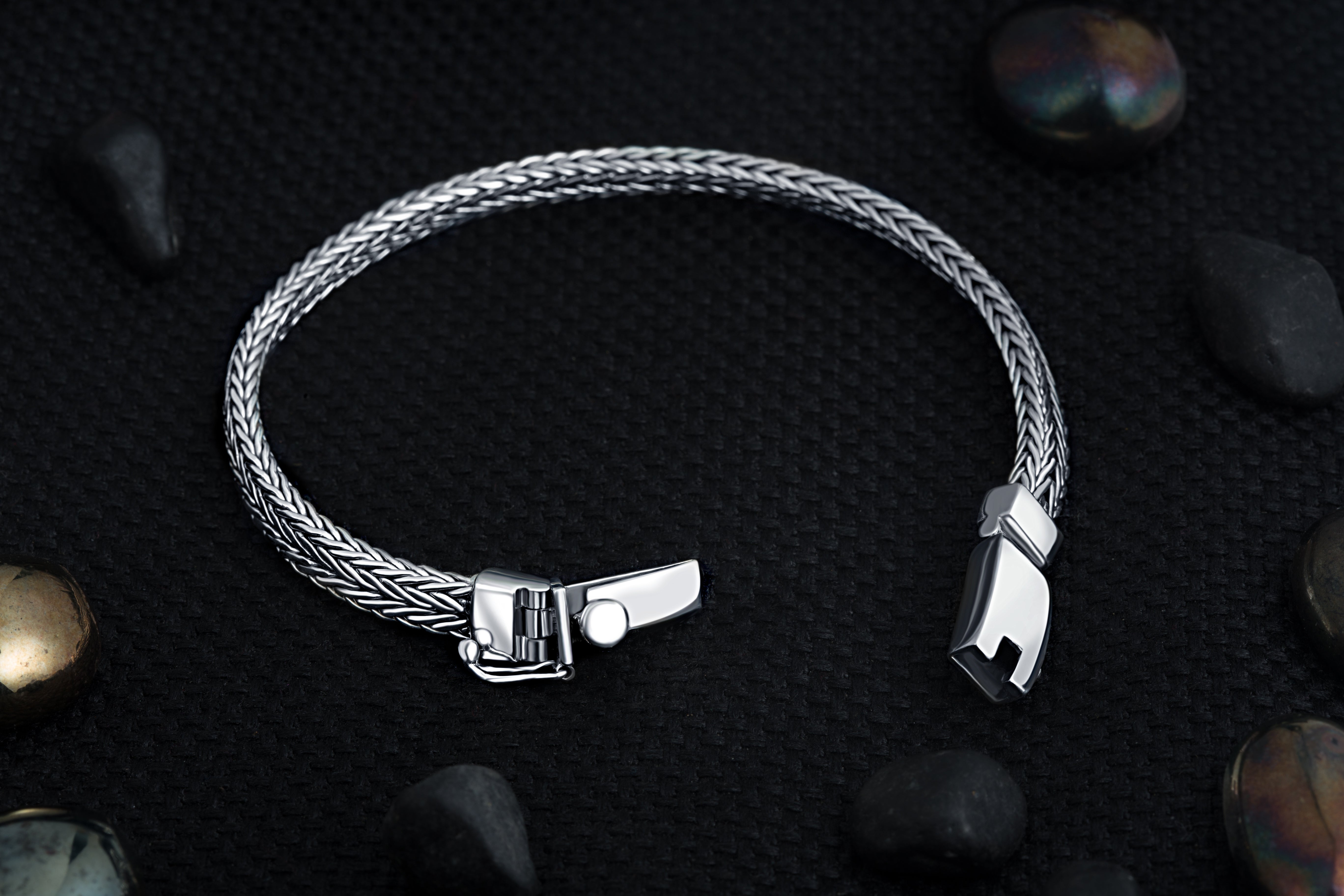 Men and bracelets go hand-in-hand. Bracelets are a most personalised jewellery accessory in men’s fashion style. Our Glorious Soul Sterling Silver Bracelet for Men is truly an exquisite bracelet. The rope style design and the rope weaving pattern engraving gives the Glorious Soul Silver Bracelet a powerful macho appeal and a tough vibe. Made in 92.5 Sterling Silver with an exotic oxidised silver finish, our Glorious Soul Sterling Silver Bracelet is a tribute to the tough and glorious masculine spirit that provides support and strength to all around. This rope style bracelet is symbolic of divine strength. Let your inner strength shine through our Glorious Soul Sterling Silver Bracelet from our men’s jewellery collection.