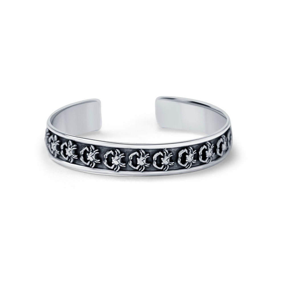 Embody the mystical charm of the zodiac with our 925 Sterling Silver Karka Cuff Kada. This intricately designed cuff features Cancerian symbols all over, symbolizing protection, intuition, and emotional depth. Finished in oxidized silver, this cuff adds a touch of edgy sophistication to any outfit. Perfect for all-day wear, the Karka Cuff is a must-have accessory for the fearless and fashion-forward man.