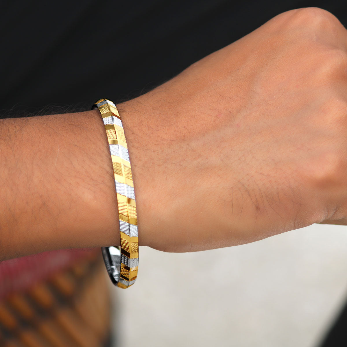 Two-tone silver and gold men sikhi kada