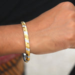 The Prismon 925 Sterling Silver Punjabi Sikhi Kada for Men is a true symbol of faith, strength, and timeless style. Crafted in premium 925 sterling silver, this kada features a dual-tone finish with golden diagonal motifs resembling prisms set against an intricately detailed silver base. The striking combination of gold and silver gives it a bold yet elegant look, making it perfect for everyday wear, festive occasions, or spiritual significance.