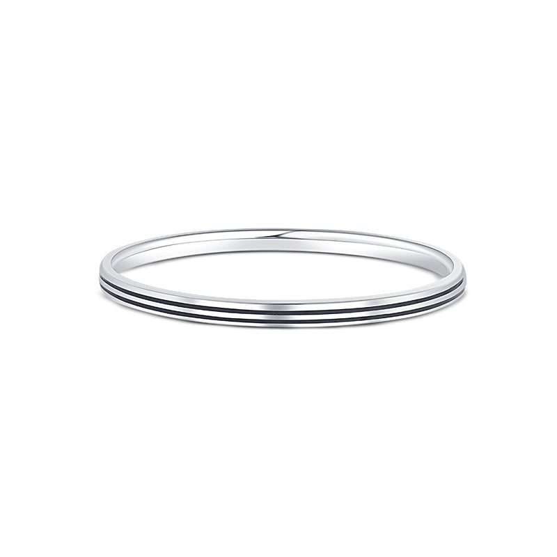 Make a bold statement with this unique Black Grace 2 Lines Silver Kada for Men. Crafted from sterling silver, this minimal yet bold kada features two black enamel lines, making it the perfect accessory to add flair to any look. Treat yourself or someone special to this timeless piece, and make a powerful impression.