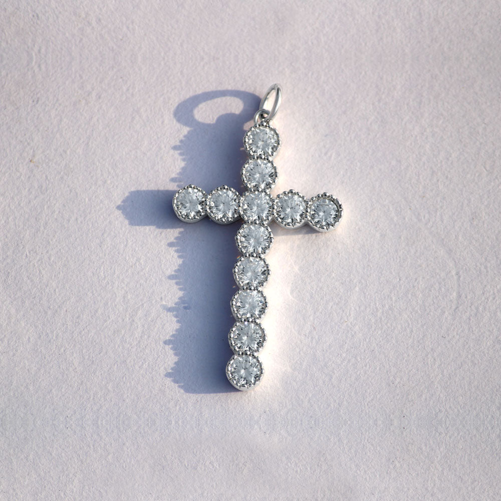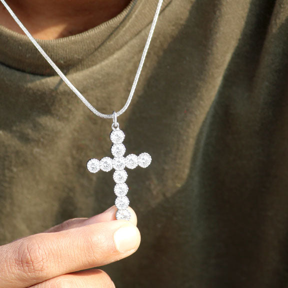 Embody the spirit of faith and elegance with our 925 Sterling Silver Eternal Circle Pendant. This stunning design features a delicate cross motif encased in a circular shape, beautifully adorned with zirconias that sparkle with every move. Finished in rhodium for added shine and durability, this pendant is perfect for all-day wear and makes a  statement at parties. Whether you're looking for a thoughtful gift for him or a treat for yourself, the Eternal Circle Pendant is an ideal choice.