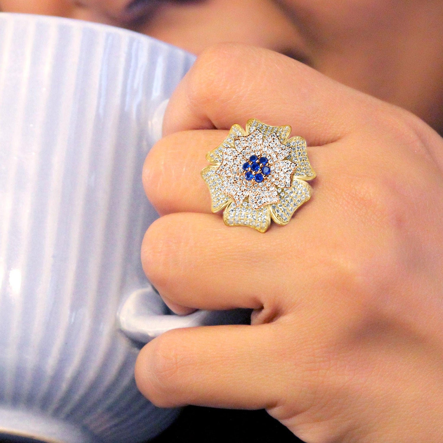 Flower Shower Sterling Silver 3- tone cocktal Ring for Women