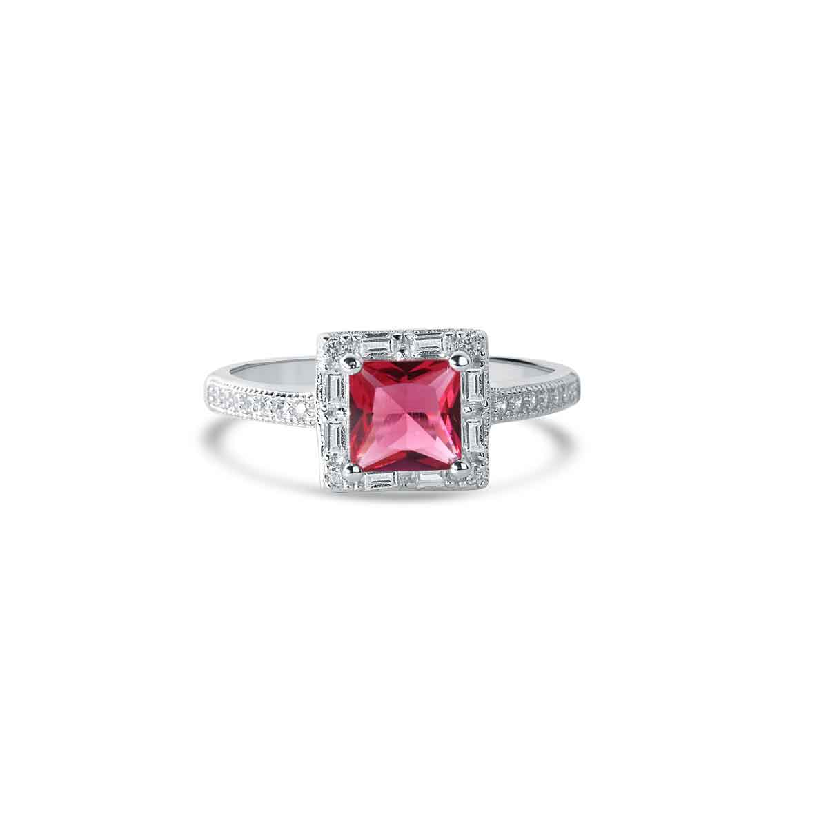 Indulge in luxury with our Red Treasure Box 925 Sterling Silver Ring. Featuring a stunning red square motif embedded with zirconia. With a rhodium finish, it exudes elegance and is perfect for any party. Give the gift of sophistication with this exclusive ring.