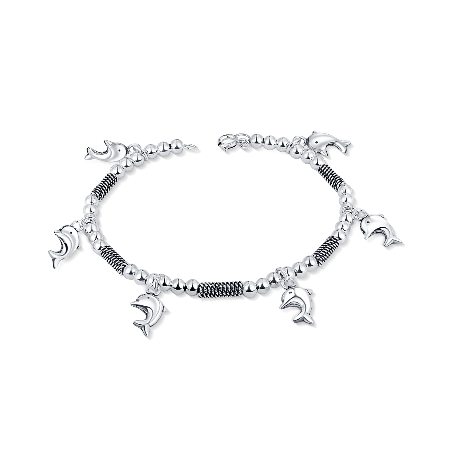 Opt for the everyday trendy look, a touch of ancient love with an oxidized silver finish. Features dolphins motifs with the full silver body attached with the solid silver beads attached to the bracelet. A perfect versatile style that will take pride to be in your collection. Embrace the beautiful bracelet with any of your funky outfits and it will blend.