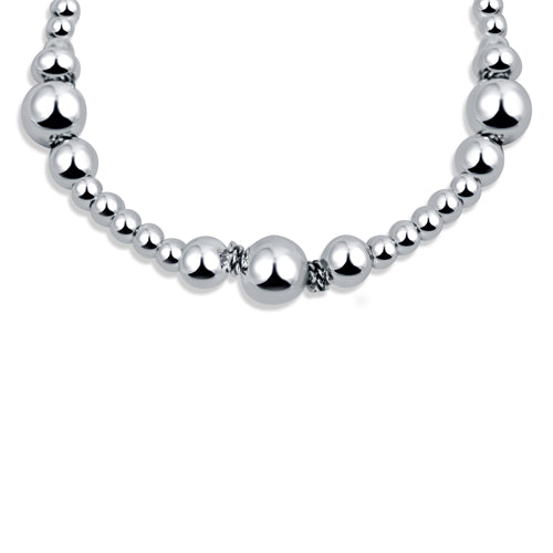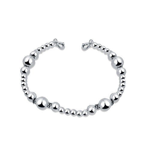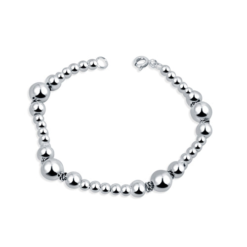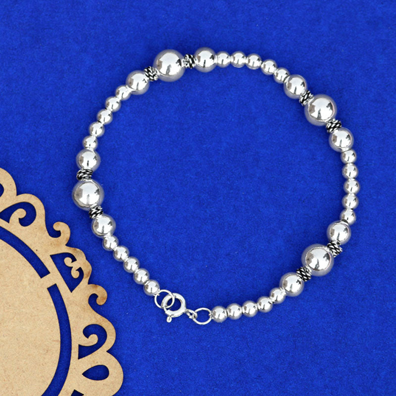 Adorn your wrist with this stellar delight, a silver bead bracelet that's out of sight. Its silver balls shimmer like distant stars in the sky, a cosmic beauty that draws every passerby. A celestial adornment for any modern woman, crafted with love from 92.5 sterling silver and with an elegant silver finish that makes this bracelet simply divine.