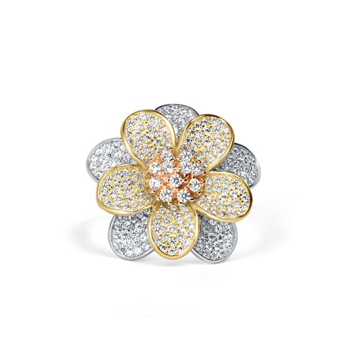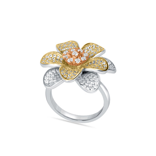 Flower Shower Sterling Silver 3- tone cocktal Ring for Women