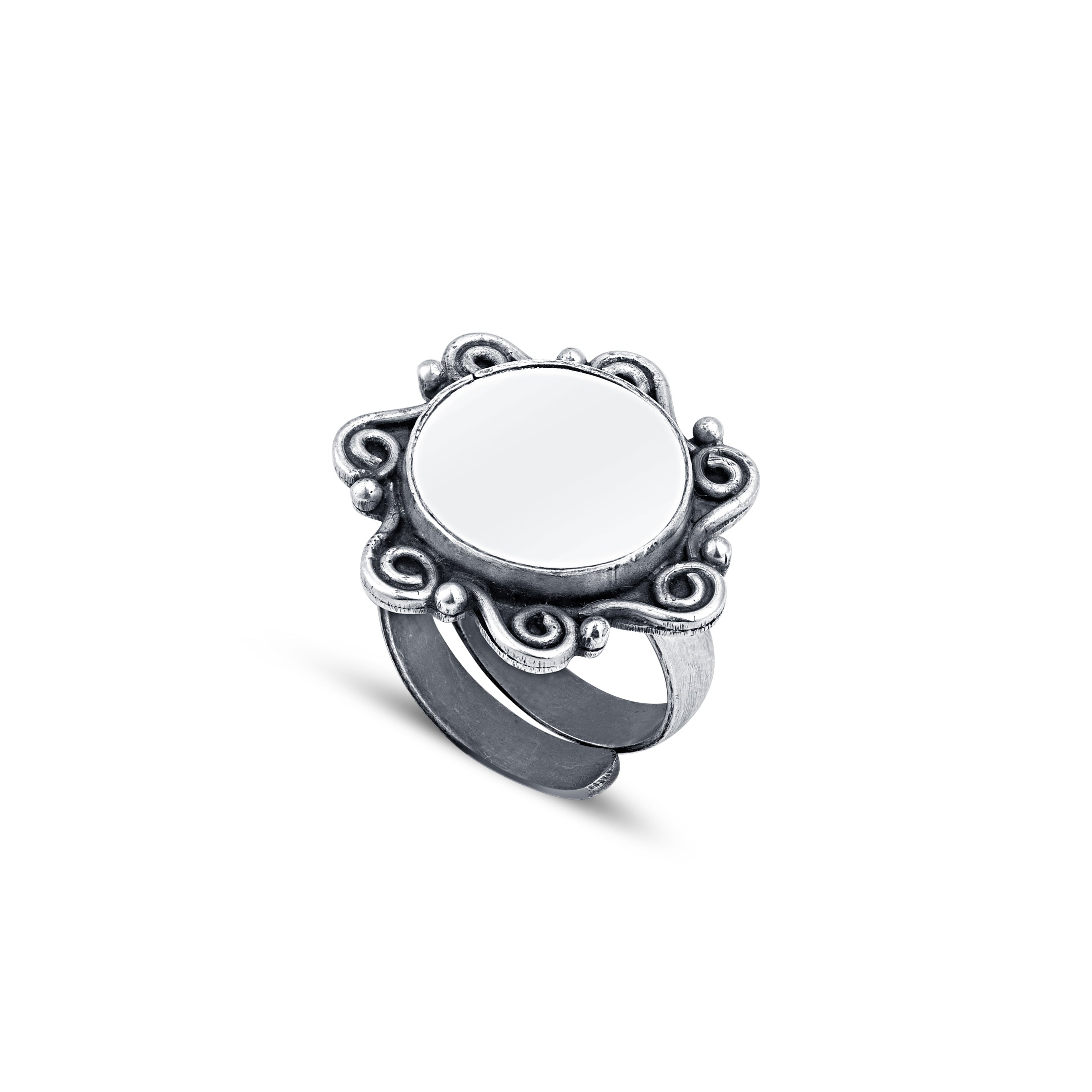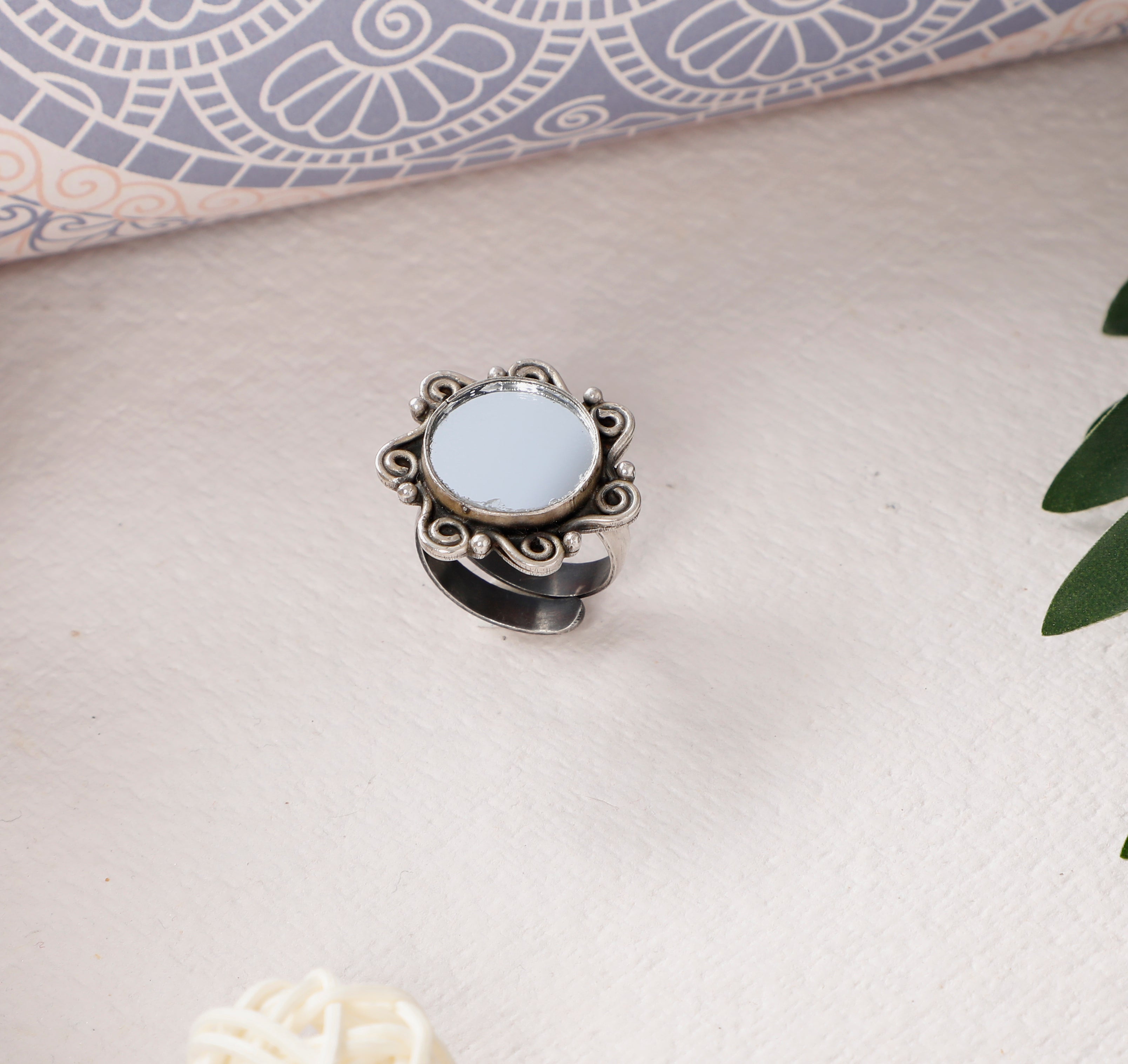 Be the embodiment of elegance and grace with this gorgeous Sparkling Mirror Ring. Crafted from 925 sterling silver and studded with glimmering rouns mirror as a center piece, this ring will shine with luminous beauty. Its intricate carved design weaves a story of luxury and timeless style, sure to make a captivating impression.