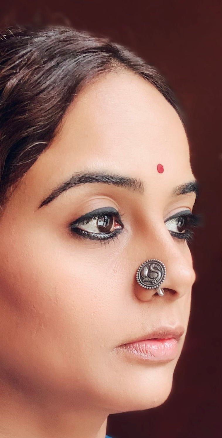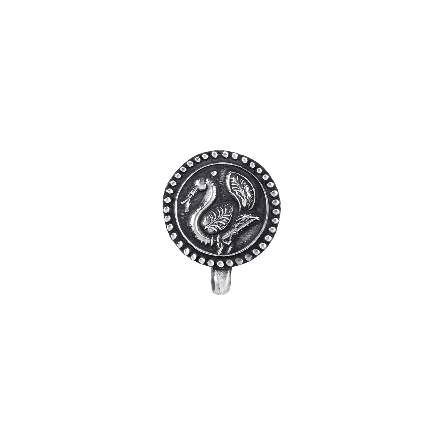 The beautiful intricated peacock pattern in basic round shape to adore your nose beautifully.