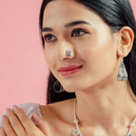 Get that edgy, tribal-inspired look with our 925 Sterling Silver clip-on nose pin for women! Designed in a square shape with an oxidised and rawa floral design, this nose pin adds a touch of unconventional charm to any outfit. No piercing needed!