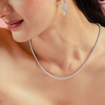 Elevate your style with this exquisite 925 sterling silver tennis necklace, beautifully studded with sparkling 3mm zirconias. The rhodium finish adds a luxurious touch, enhancing the brilliance of the CZ stones. Perfect for everyday wear or special occasions, this elegant necklace is sure to turn heads.