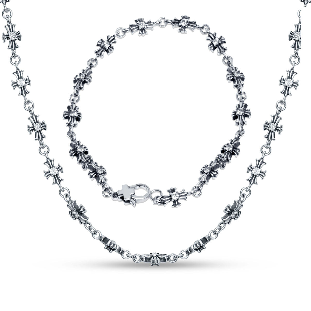 Radiate faith and sophistication with our Faithful Elegance 925 Sterling Silver 2-Piece Set. This exquisite set combines a bracelet and necklace, expertly crafted from high-quality 925 sterling silver. The oxidized finish adds a touch of elegance, while the cross motif, embedded with zirconia in the center, shines brightly as a symbol of devotion.