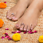 Can't get enough of those raindrop inspired accessories? Us either! This toe ring features a dainty raindrop design, adorned with red zirconia stones. It's made with 925 sterling silver and finished in rhodium plating for a long lasting wear.